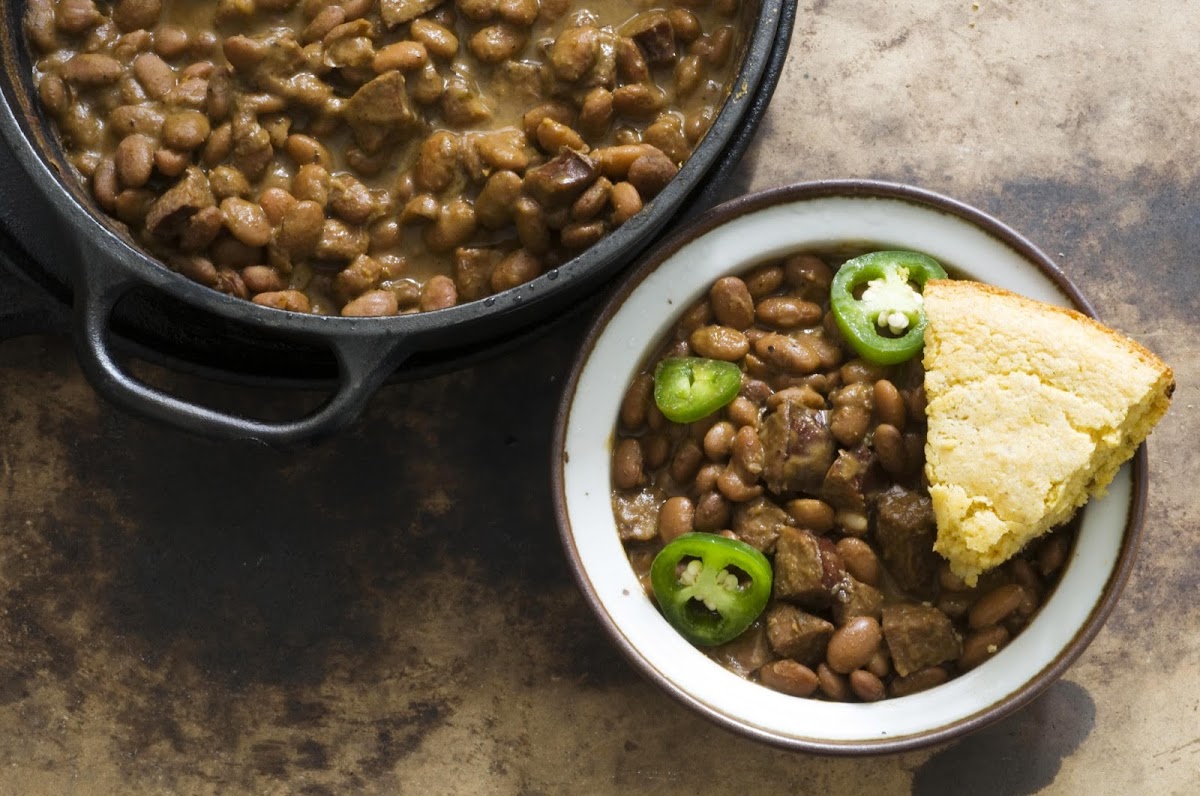 1 pound pinto beans, 1 pound grnd meat, 1 can. A delightful stew with pinto beans, ground beef, and cilantro. I once tried using a 90/10 mix and it definitely wasn't as good. Serve with shredded cheese, sour cream, and cornbread. Beans ground beef rice recipes.